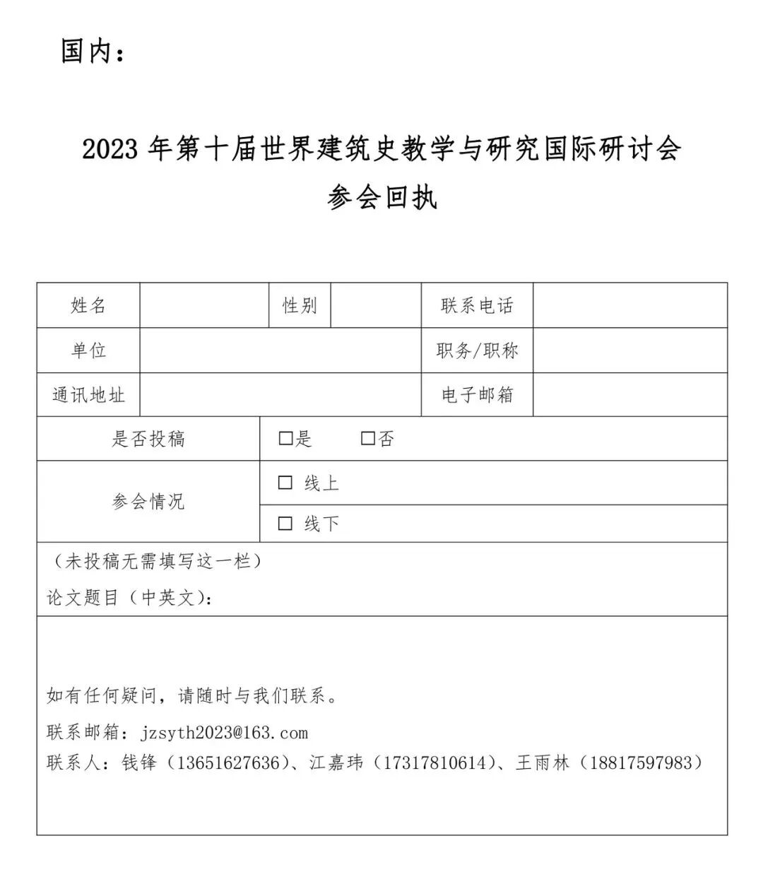 请将回执(链接.docx)发送至jzsyth2023@163.com邮箱。如之前已发过回执,则无需重复发送。