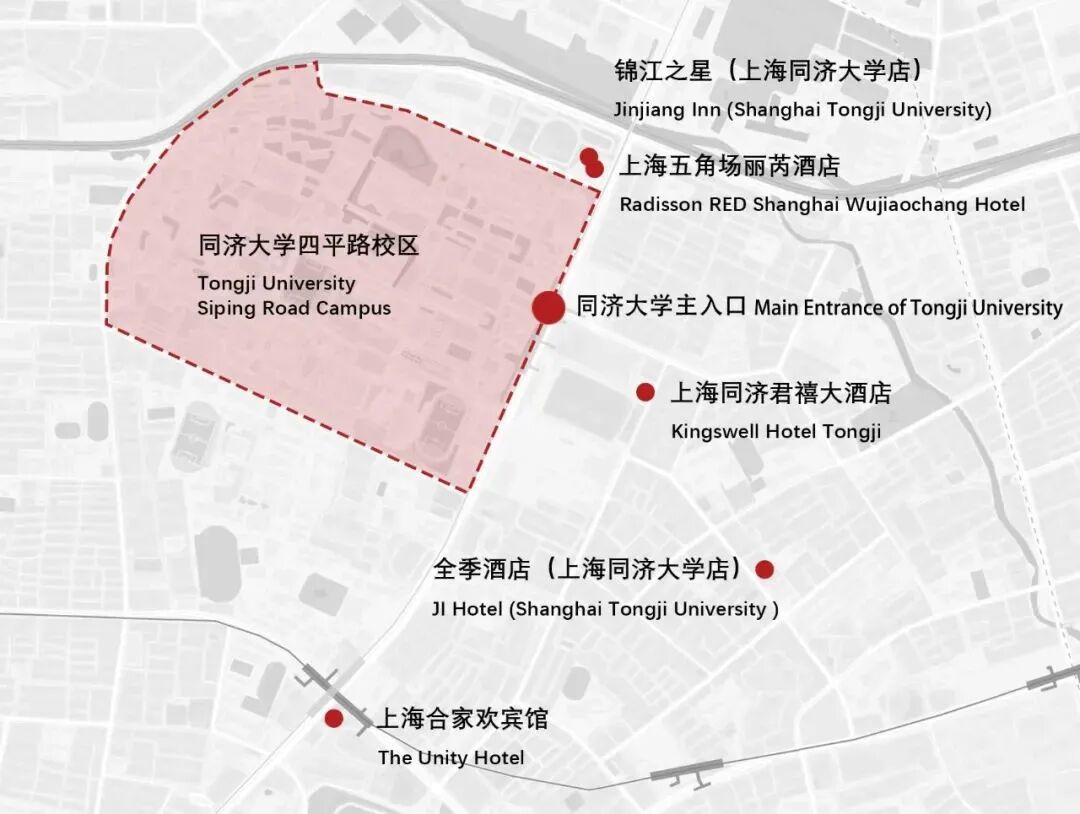 1) Recommended hotels around Tongji University. (map below)