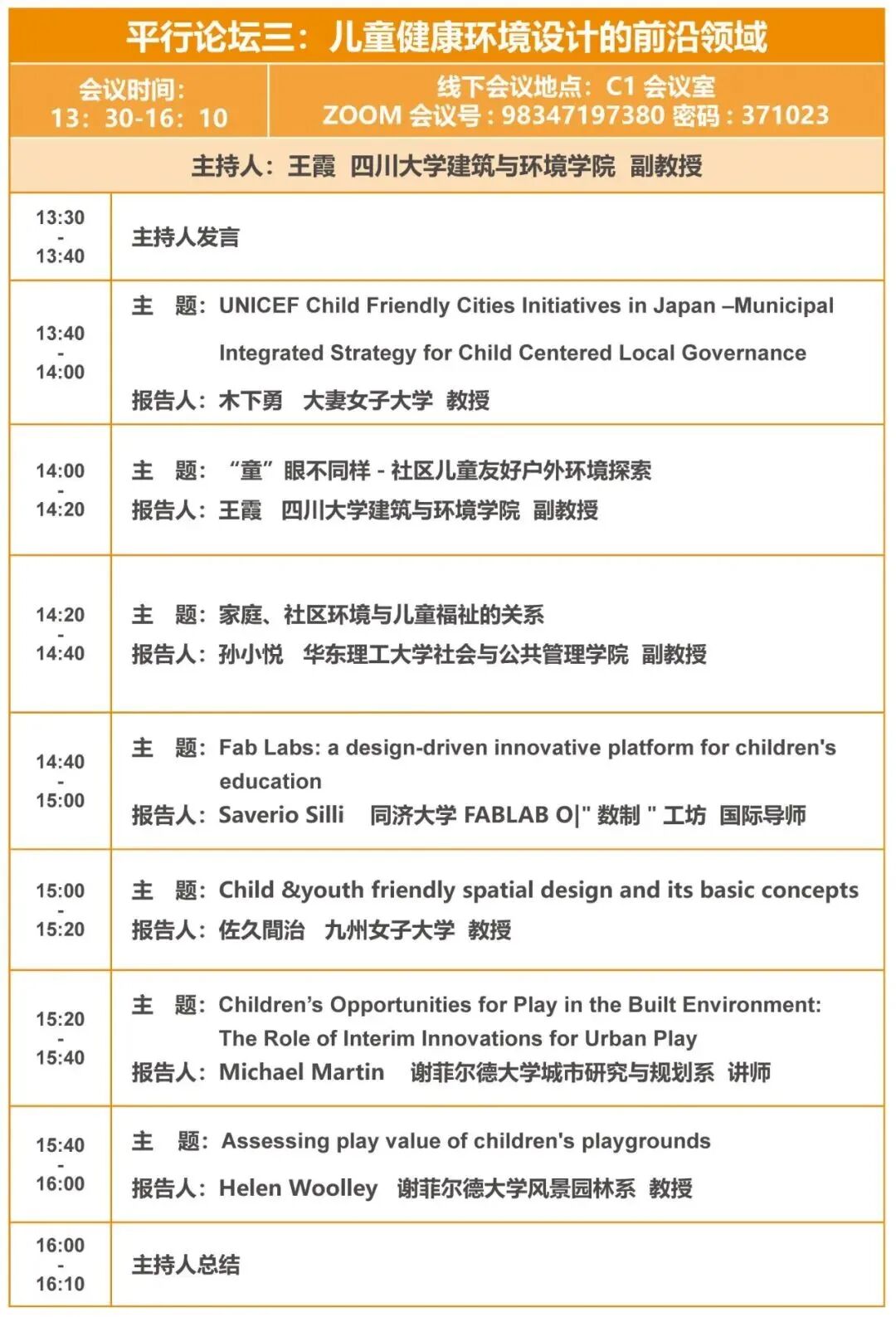 平行论坛三:儿童健康环境设计的前沿领域