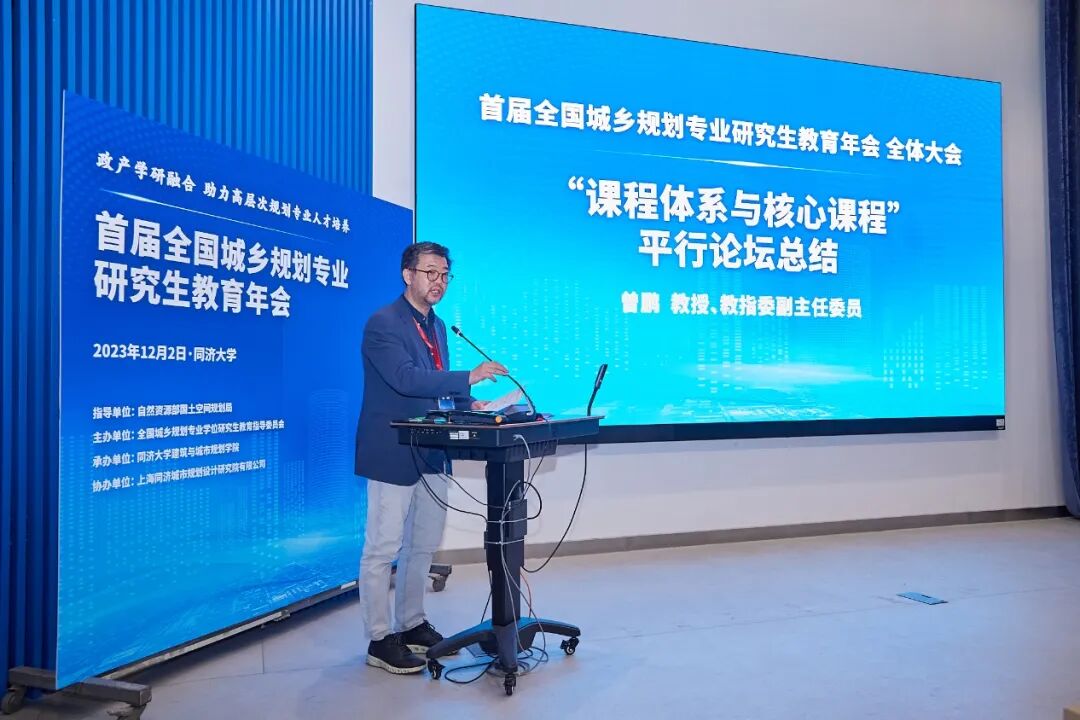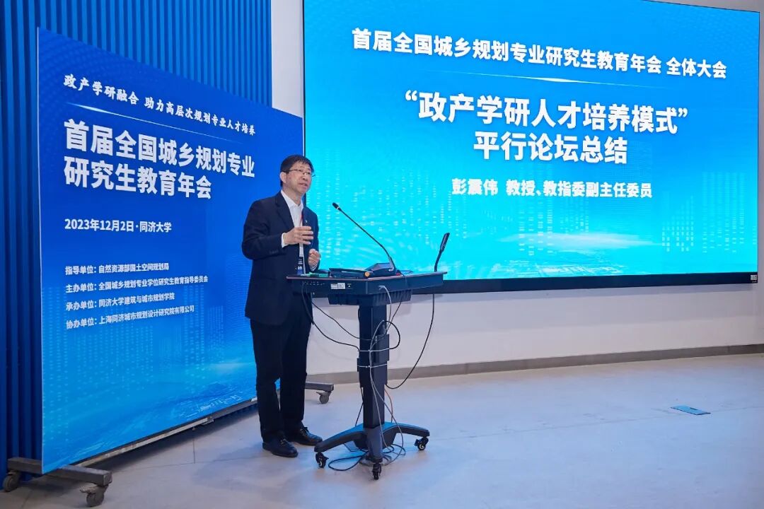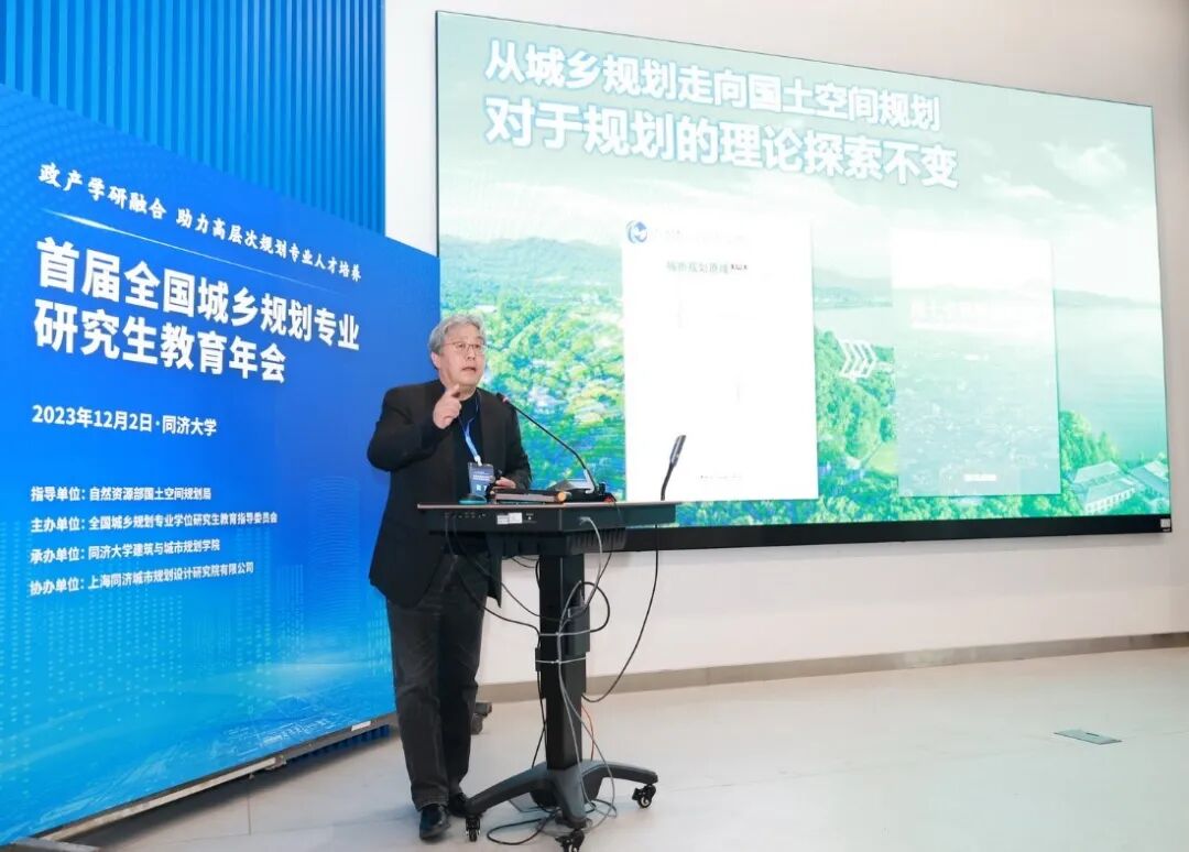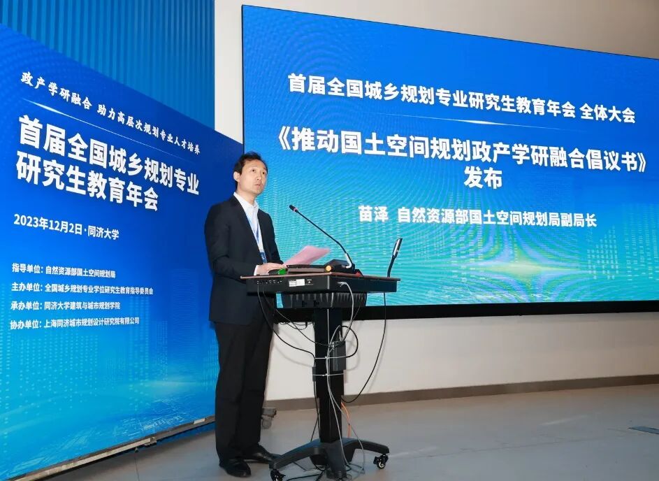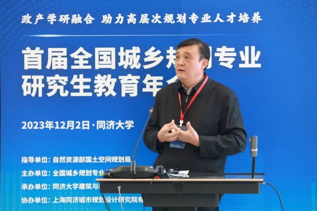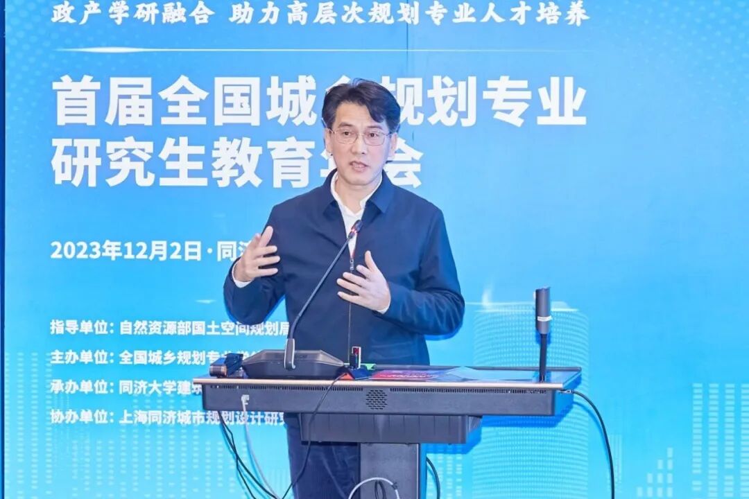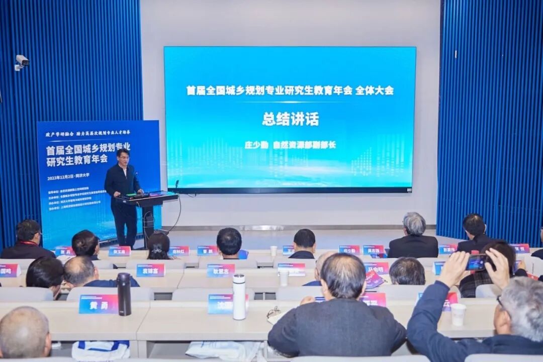 2023年12月2日,首届全国城乡规划专业研究生教育年会在同济大学举行。全国城乡规划专业研究生教育指导委员会主任委员、自然资源部副部长庄少勤出席大会并讲话,教育部学位管理与研究生教育司副司长王进富到会指导。本届年会由自然资源部国土空间规划局指导,全国城乡规划专业学位研究生教育指导委员会主办,同济大学建筑与城市规划学院承办,上海同济城市规划设计研究院有限公司协办。来自全国各地60多所规划相关院校的院长、系主任和学科带头人,北京、上海、天津、重庆、黑龙江、浙江、山东、湖北、广东、海南、四川、新疆维吾尔自治区等省(区、市)自然资源主管部门负责同志,以及10余家规划编制单位负责人,紧密围绕大会主题“政产学研融合 助力高层次规划专业人才培养”,展开了富有建设性的交流研讨。一批政产学研合作项目在年会上签约,《推动国土空间规划政产学研融合倡议书》正式发布。