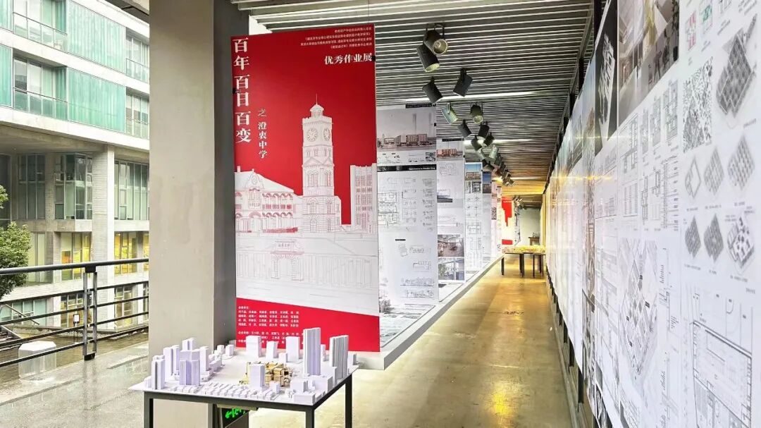 同学们的思考与设计汇总成“百年”历程下“百日”交融中澄忠中学的116种“百变”的可能,本次教学成果已于2024年1月18日在同济大学建筑与城市规划学院D楼二楼展廊顺利展出!
