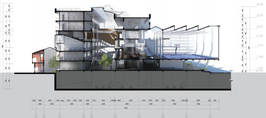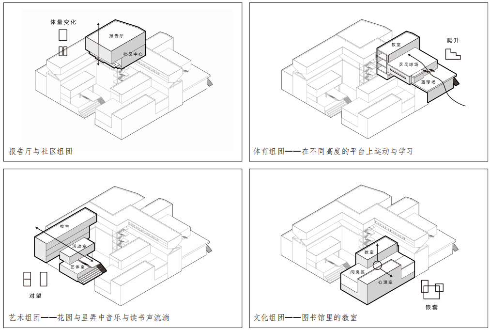 希望通过整合建筑结构、功能、形态、技术、构造与材料等要素,在多元化的都市背景中建构有活力的场所环境,营造有利于师生之间,学生之间的互动交流的多元融合学习社区。