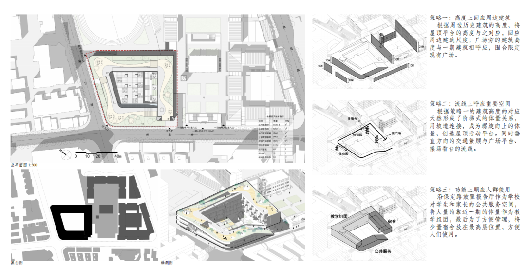 课题旨在探寻当代高密度城市空间中的场地和建筑设计策略,通过建筑与外部空间组织,营造与基地周边文化语境、城市环境和既有建筑相适应的空间关系。