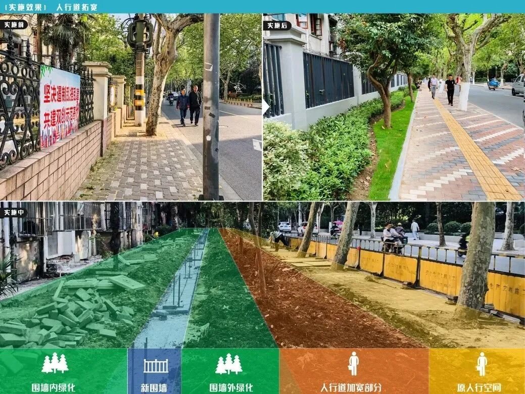 阜新路“美丽街区”人行道拓宽实施前后效果