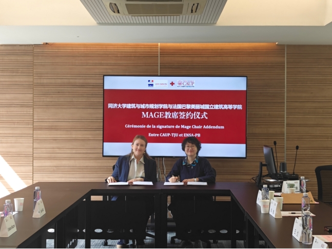 随后,双方举行中法MAGE教席签约仪式。这一签约标志着两校在城市交通、建筑、大都市发展等关键领域开启全方位、深层次合作。未来,双方将在科研合作上共同开展前沿课题研究,整合优势资源,推动建筑与城市规划领域理论创新;在联合工作坊与设计营活动中促进师生思想碰撞与创意交流,提升实践操作能力;在师生交流方面建立便捷沟通机制,鼓励互访与学术互鉴,拓宽学术视野。