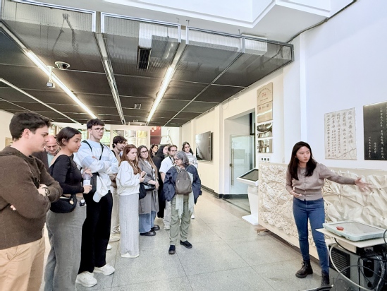 国际生事务专员杨关陪同代表团师生参观了文远楼一层的各实验中心,随后前往C楼二层的傅国华建筑与城市国际教育中心。先进的实验设备、丰富的模型作品以及浓厚的学术氛围给代表团师生留下了深刻的印象。