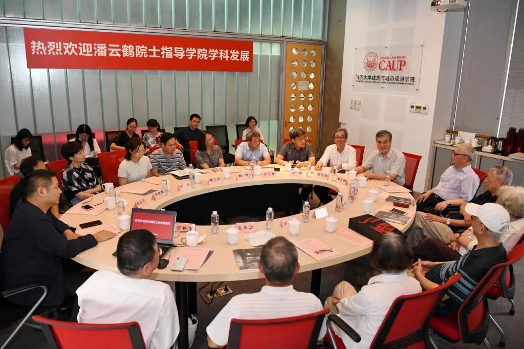 8月27日下午,潘云鹤院士返校指导学院学科发展座谈会在建筑与城市规划学院举行。中国工程院院士、中国工程院原常务副院长潘云鹤,同济大学副校长、中国工程院院士吴志强,建筑与城市规划学院教授、中国科学院院士郑时龄、常青,建筑与城市规划学院院长李振宇,建筑与城市规划学院老教授、潘云鹤院士同学及中青年教师代表,以及学校党委宣传部部长朱大章、机关党委常务副书记熊岚、发展规划部部长蔡三发、同济大学校友会秘书长郑晓蕾以及学科建设办公室徐轶等出席座谈会。会议由建筑与城市规划学院副院长李翔宁主持。