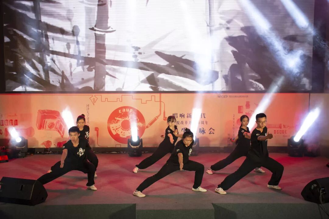 师生们带来的节目时跨古今,融贯中西,展现了学院师生开阔的眼界和广泛的涉猎,更体现了改革开放拥抱世界、走向世界的开拓进取精神。首先是周礪同学带来中国传统艺术川剧变脸的精彩表演。然后是voka清唱团用阿卡贝拉这种源起于欧洲中世纪的演唱方式带来的《外婆的澎湖湾》,展现西方优美的音乐演唱方式的同时,勾起了观众对于美好童年时光的怀想。