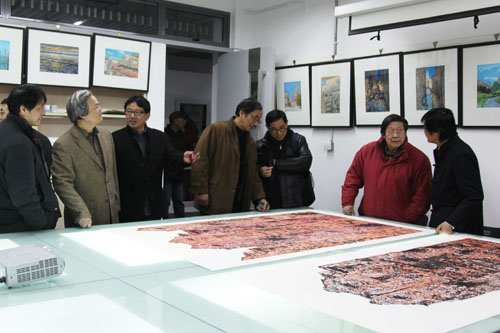 伍江副校长首先致词,强调了该画展无论是展览的形式、内容、艺术教育于同济大学、与上海美协的联合等方面都富有极大的启示作用,并希望上海美协将同济大学作为重要的艺术交流平台。陈琪秘书长代表上海美术家协会感谢同济大学建筑城规学院的大力支持,继2011年与上海美协版画艺委会共同举行《上海版画精品展》之后,又于2012年举办了这个画展,是将中央倡导的优秀文化艺术进院校、社区的重大举措落实到了实处,今后会与建筑城规学院进一步加强合作共建艺术大平台。著名画家王劼音、黄阿忠、武国强也先后致词并表示衷心感谢。吴长福院长在致词中特别谈到艺术教育在学院的重要地位,老一辈美术教师曾经活跃于上海的美术界并具影响地位,也希望年轻的美术教师后来俱上,与上海美协加强合作共筑辉煌。