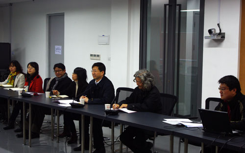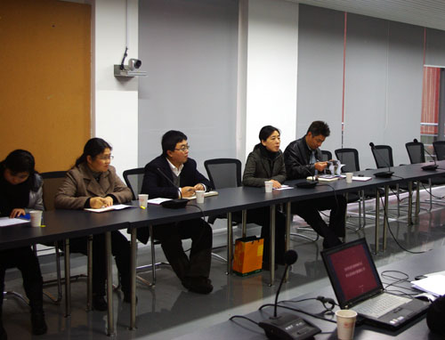学院党委书记彭震伟、院长吴长福首先代表学院欢迎马锦明副书记率队来我院调研工作。吴长福院长接着介绍了版画艺术进校园、美术作品展、双年文艺汇演等一系列学院文化活动,表明学院对于文化建设、提升师生文化生活工作的大力开展与支持。并且学院通过与校外相关文化机构的合作促进文化载体的开发与创新,培养学生的创作精神。彭震伟书记介绍了学院宣传工作平台建设,并结合学院关心下一代委员会的工作阐述了我院近期文化建设与新闻宣传工作的重点。随后,侯斌超老师结合PPT从理论学习、精神文明、文化建设、新闻宣传四个方面系统的介绍了学院的近期工作。张建龙老师结合本专业的教学实践,介绍从专业教学中对学生进行文化教育与感染。左琰老师介绍了女教师沙龙这一学院特色文化活动,并介绍了室内设计专业中的文化内涵及在教学中的体现。
