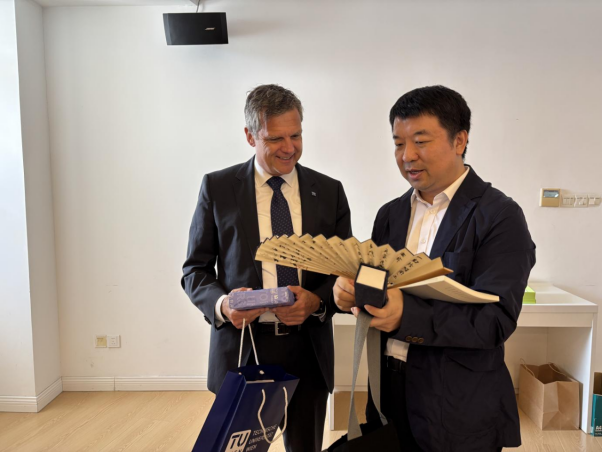 In June 2025, professor Wang Zhendong visited TU Wien with Tongji university delegation. He warmly welcomed President Schneider's return visit. The two sides agreed on research cooperation and a long - term mutual visit mechanism. Based on the doctoral joint training memorandum signed in June, they discussed doctoral joint - training and Sino - Austrian cooperative education plans. Professor Wang gifted President Schneider a fan with Chen Congzhou's paintings and the German version of Chen's On Gardens. Chen was a renowned Chinese ancient architecture and garden art scholar, a Shanghai philosophy and social sciences master, and an outstanding Tongji professor. These gifts show the college's respect for academic inheritance and Sino - Austrian cultural exchange.