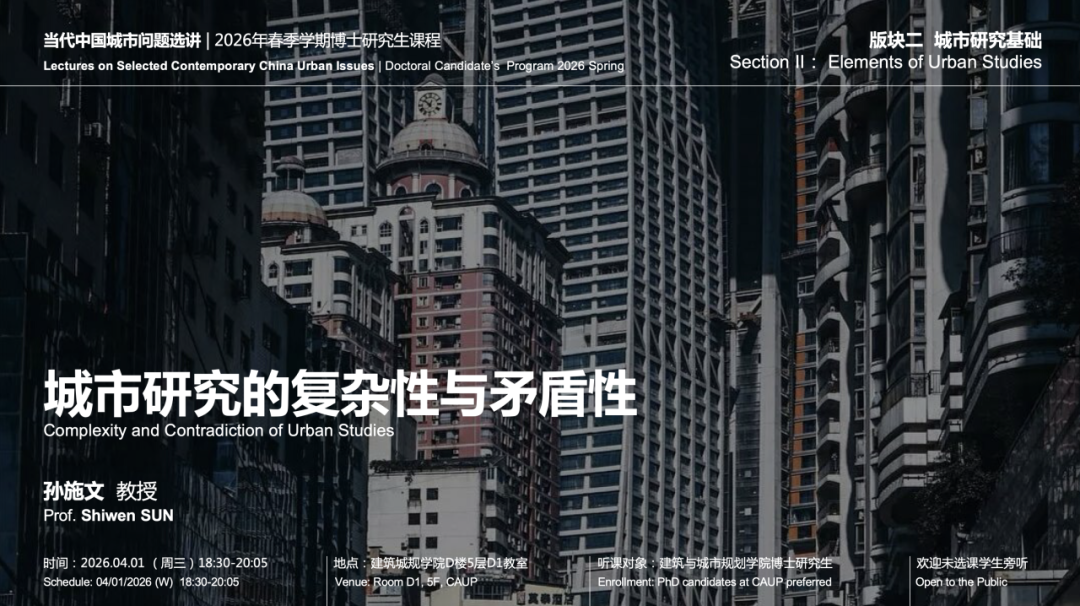 The lecture sets out from the basic concept and understanding in urban studies as well as existing problems and vague views in interdisciplinary studies, and explains the complexities and contradictions of urban studies. Besides, it proposes that the discernment of concept, starting from the phenomena, understanding the conditions of theory application and conscious positions are the basis for the methodology of urban studies.