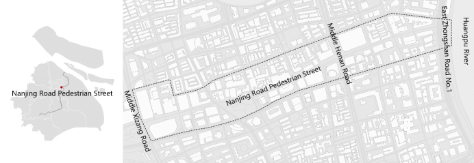 The research site of this summer workshop is the Nanjing Road Pedestrian Street in Huangpu District, Shanghai. The study area spans approximately 1.5 kilometers, extending from Xizang Middle Road in the west to the Huangpu River in the east.