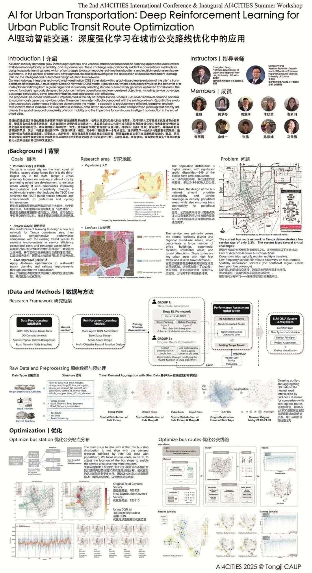 The program culminated in a diverse set of innovative outputs across interdisciplinary themes, including: AI-driven public transit optimization, Multi-objective livable environment planning, Agent-based participatory urban regeneration, Ride-hailing system optimization, Reframing urban cognition, Environmental sustainability, HAI and affective urban fields, Human–AI collaborative planning experiments, Housing typologies and neighborhood systems. These outcomes demonstrate the strong potential of integrating AI methodologies with urban research and design practice.