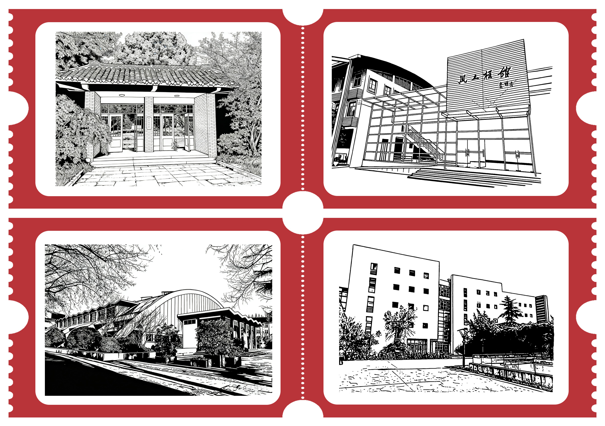 绘制12张主题明信片,定格红色瞬间。选取大礼堂、一二九大楼、南北楼等12处具代表性的红色景观,结合专业课程所学的AI绘图技法,完成12张原创艺术明信片,形成套组。
