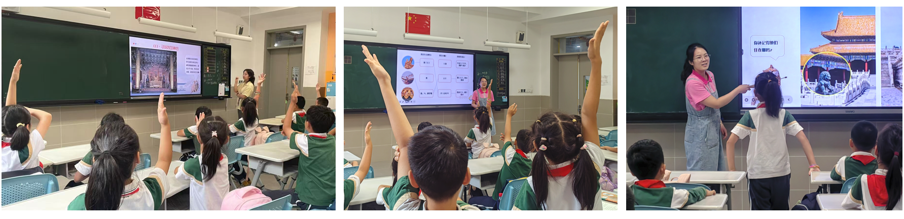 故宫专题采用从微观到宏观的思路:前两课时聚焦古建中的动物装饰元素,用通俗易懂的语言解读文化寓意;随后带领学生开展故宫中轴线上建筑观览,结合纪录片直观呈现宫殿群的恢弘布局。通过趣味案例辅助讲解,小朋友们可以真切感受故宫建筑的美学魅力。