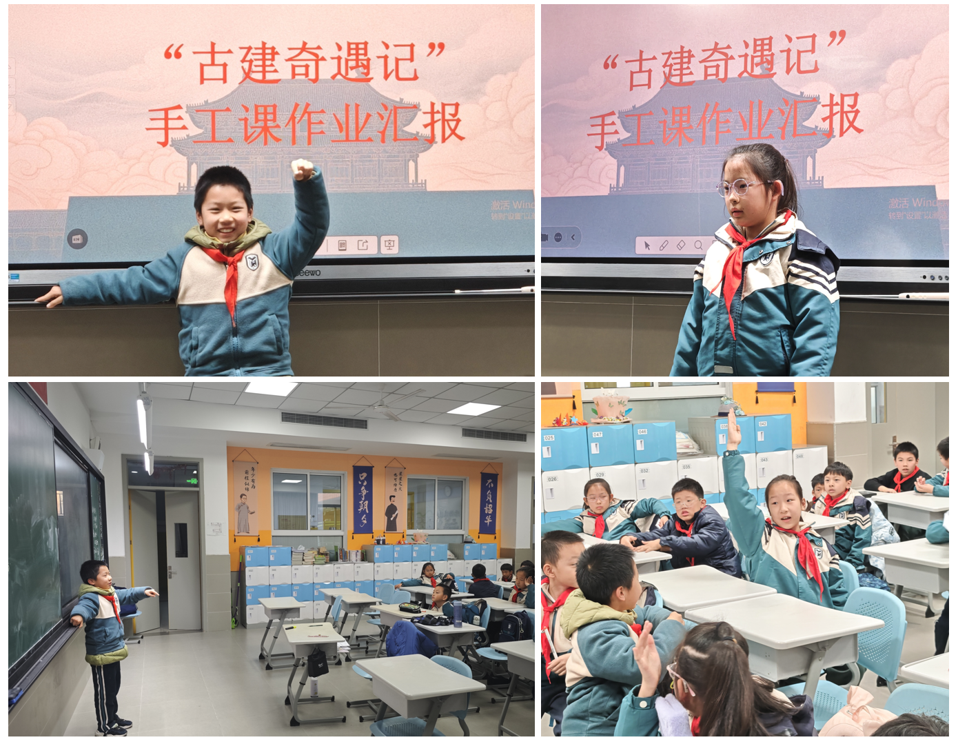 以党建为引领,让文化育童心。近日,同济大学建筑与城市规划学院研究生第四党支部携手附属新江湾城实验学校开展的“古建奇遇记”特色社团课圆满结课。本次社团课主要面向小学三年级的同学。作为贯穿整个学期的特色课程,社团课为期14周,设置古建知识讲授、手工实践、汇报总结三大板块。古建知识课程9个课时,聚焦北京故宫、陵墓、园林民居三部分,精心打磨PPT课件,开展专题讲授;手工实践课3个课时,穿插于古建知识专题之后,紧扣对应的核心内容展开,力求学用结合、知行合一;最后设置开放式学生汇报,邀请小朋友们分享自己的手工课内容,根据汇报表现给予奖状鼓励。本次社团课借助高校学术资源与专业力量,为小学生打开传统建筑的认知之窗,将建筑体验融入教学全流程,让孩子们在循序渐进的学习中感受古建魅力,在了解传统文化的同时收获成长。