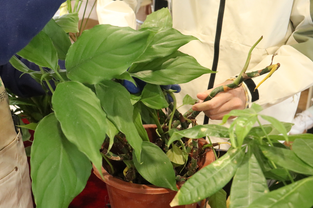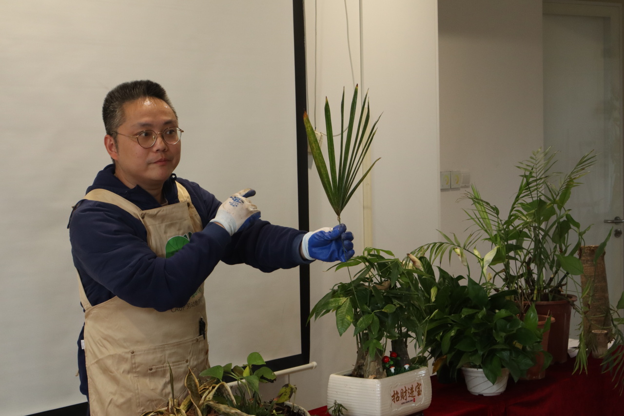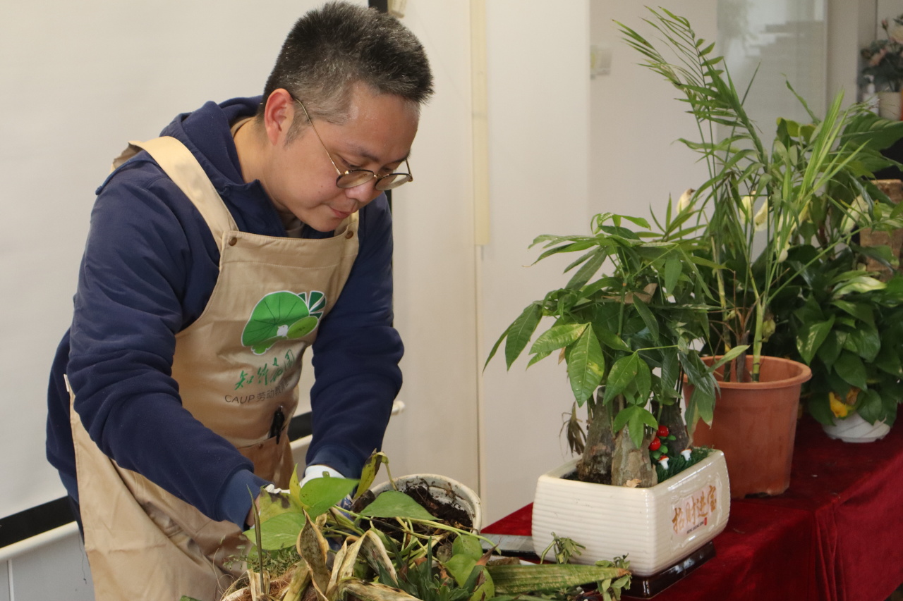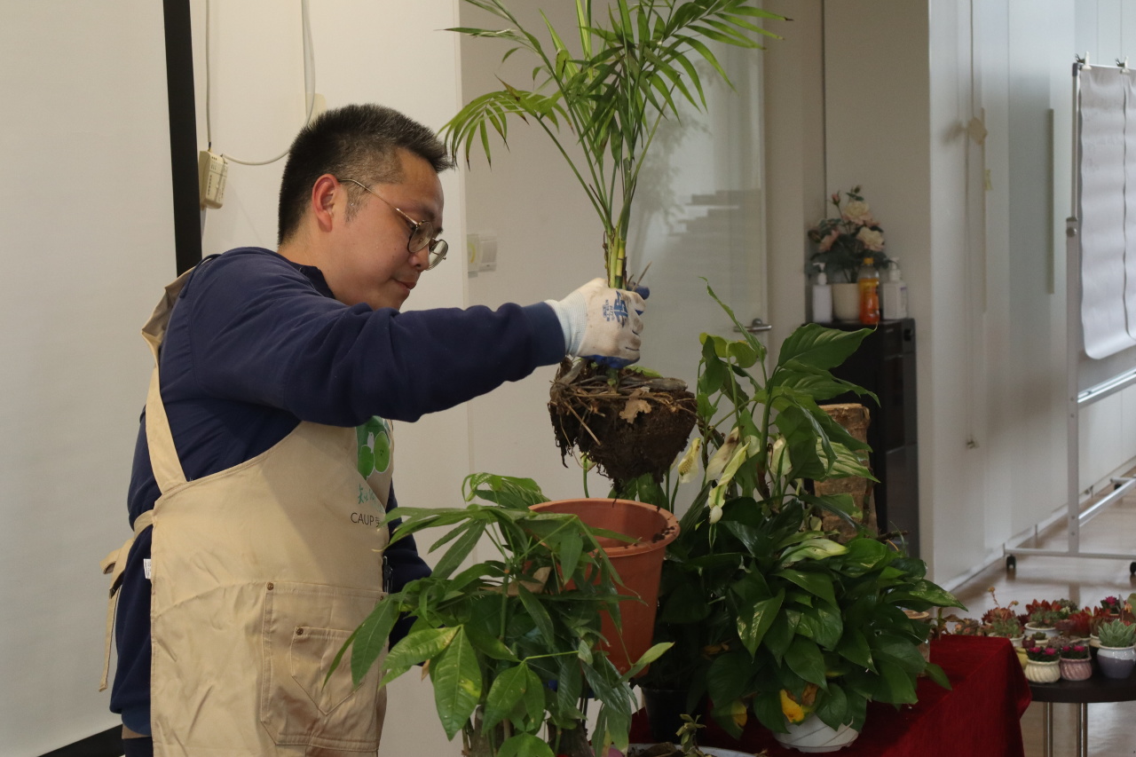 物业徐老师围绕换盆、修剪、辨别病害等进行了现场演示,从如何判断土壤状态、如何正确浇水,到根系处理和盆器选择等细节逐一讲解。