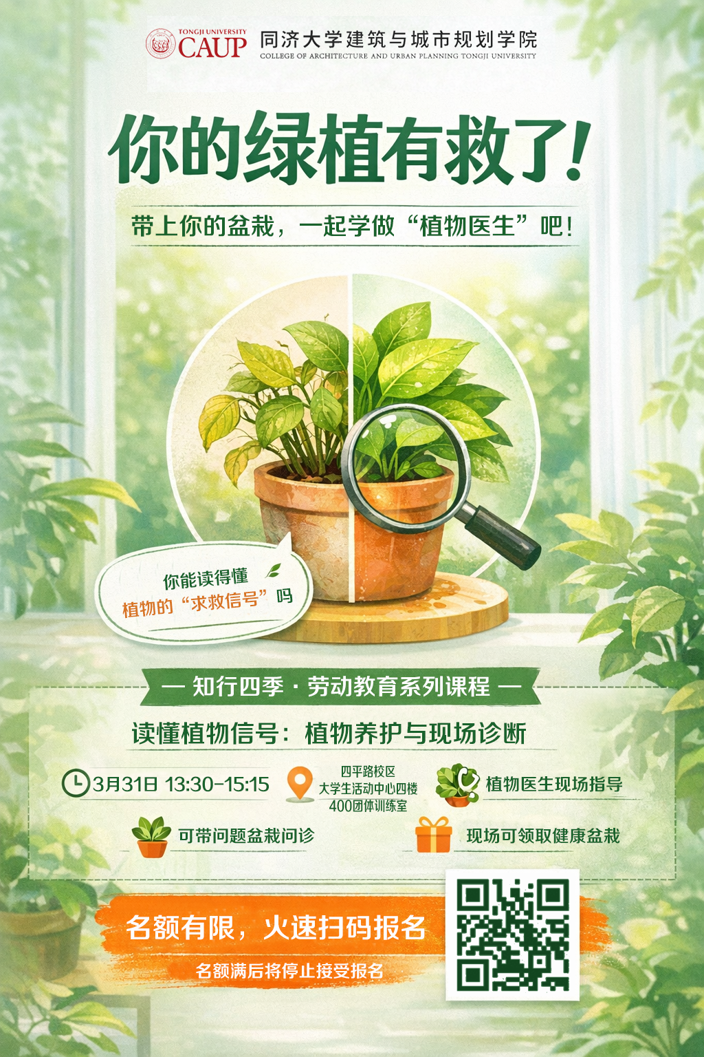 可收获2个劳动学时,名额有限,仅限50人,马上扫码报名叭!
