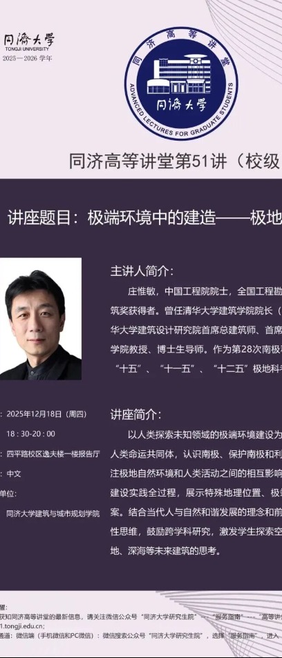 【庄惟敏院士校级高等讲堂】 极端环境中的建造——极地与极地建筑