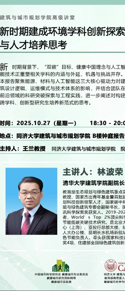 10月27日讲座丨新时期建成环境学科创新探索与人才培养思考