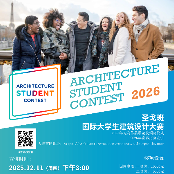 预告丨圣戈班国际大学生建筑设计大赛2025年竞赛作品展览及颁奖仪式&2026年竞赛招募宣讲