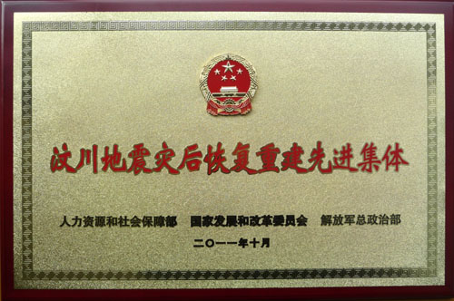 我院荣获全国“汶川地震灾后恢复重建先进集体”荣誉称号