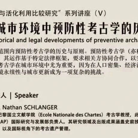 讲座回顾 | Nathan SCHLANGER教授:城市发掘——城市环境中预防性考古学的历史与法律发展